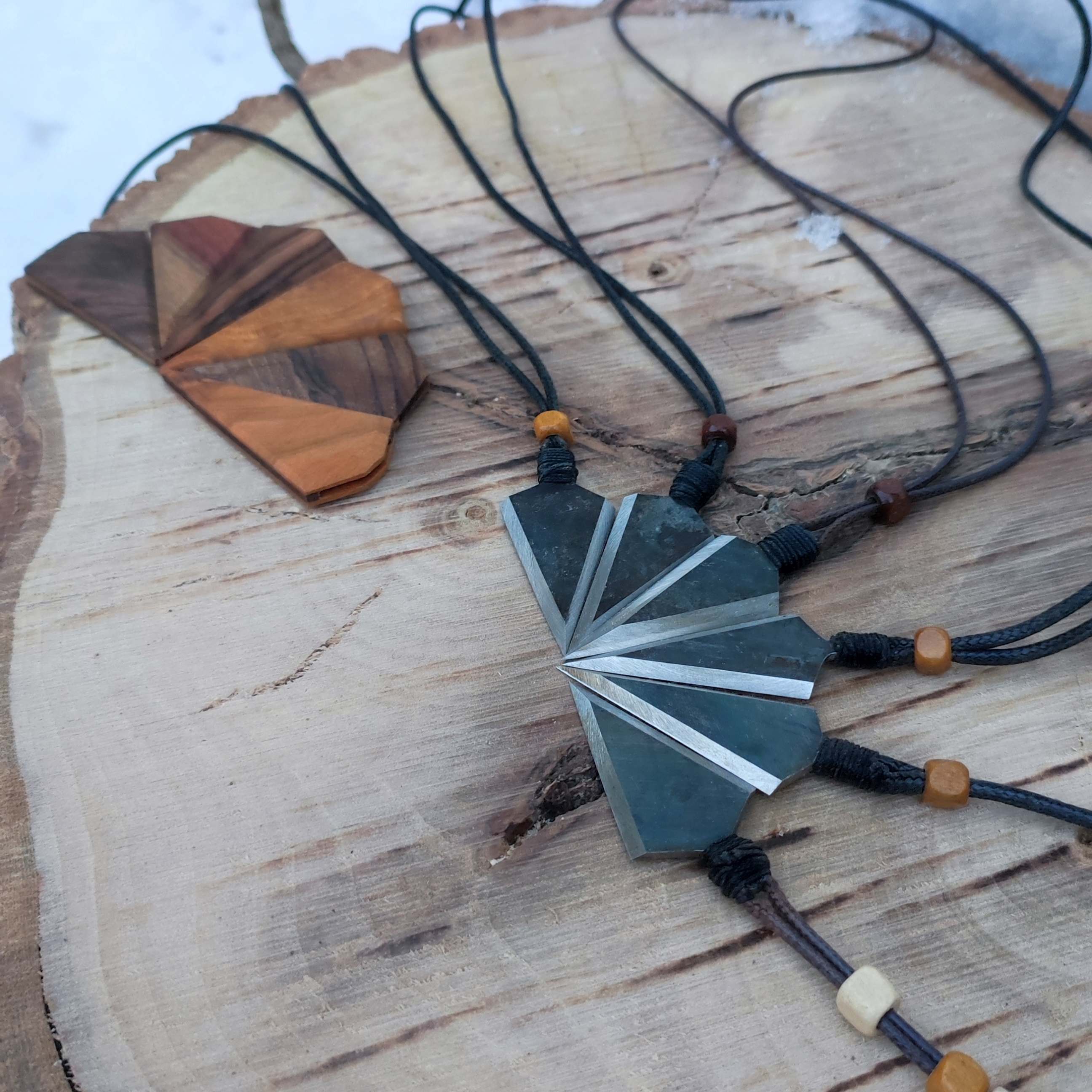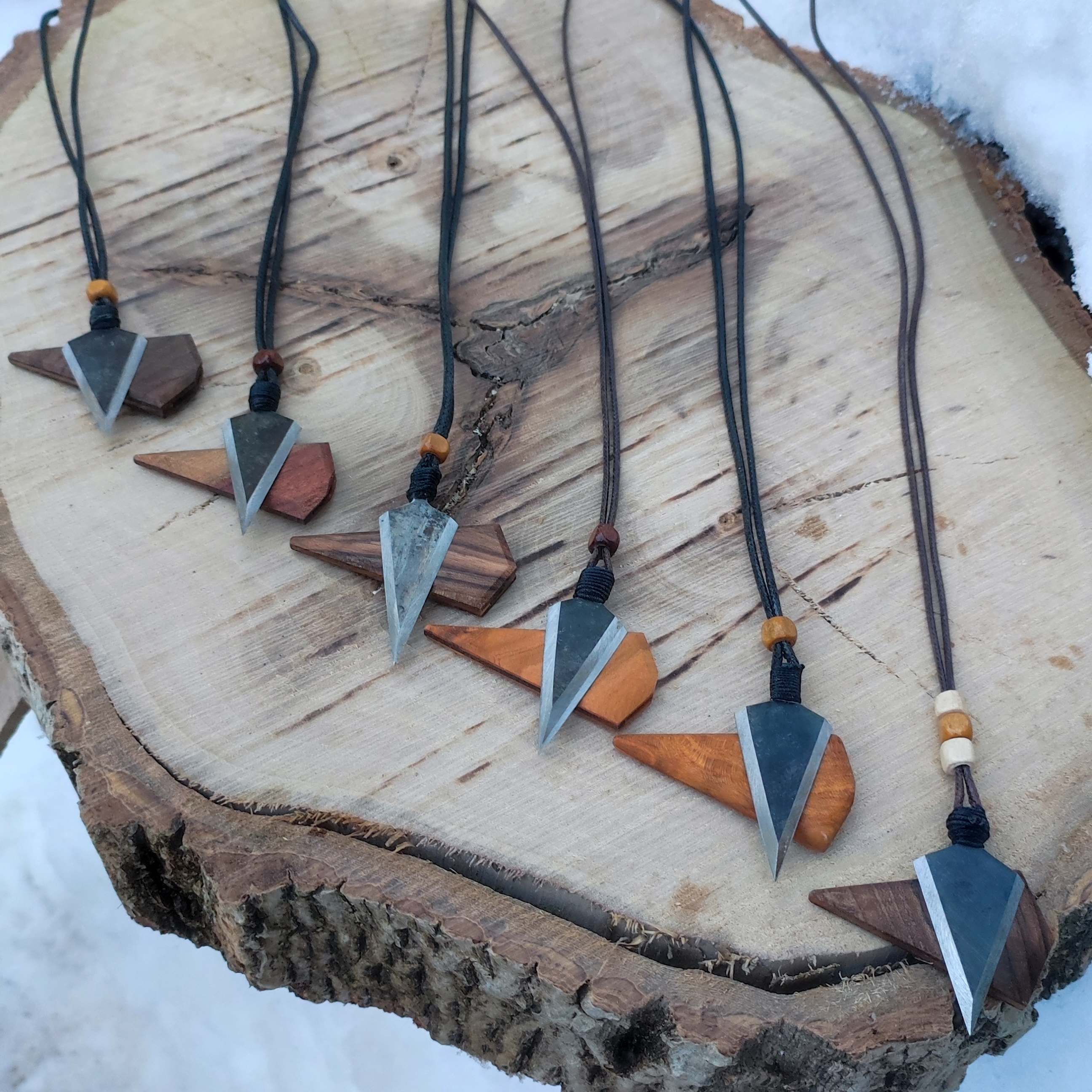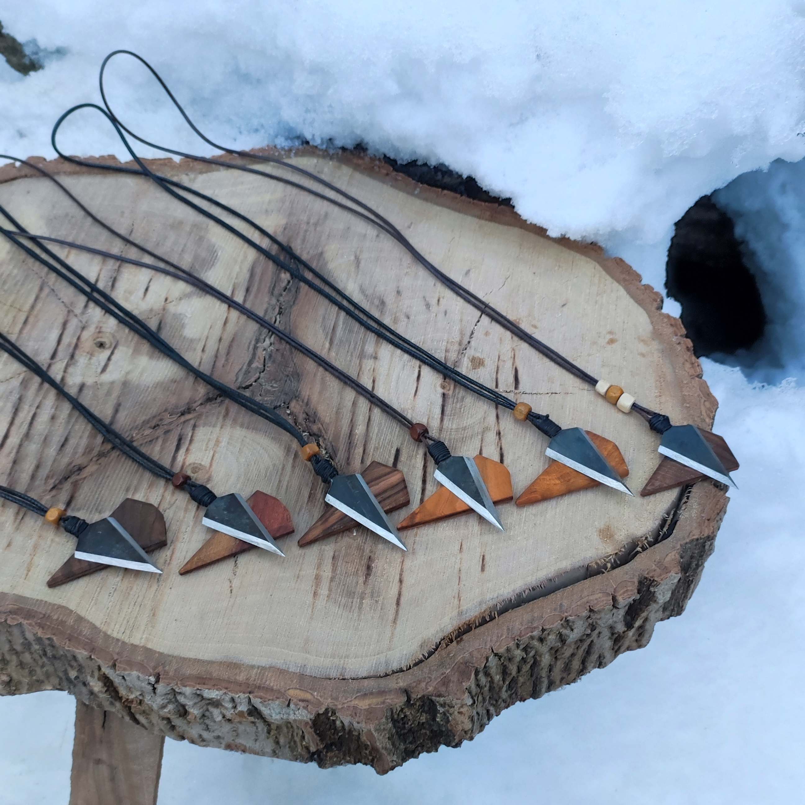 گردنبند کونایی یک ابزار بقا مخصوص طبیعت گردی که همیشه همراهته ، تیغه آن از فولاد فنر آبدیده ساخته شده و با غلاف چوبی با بند چرمی ریزبافت .