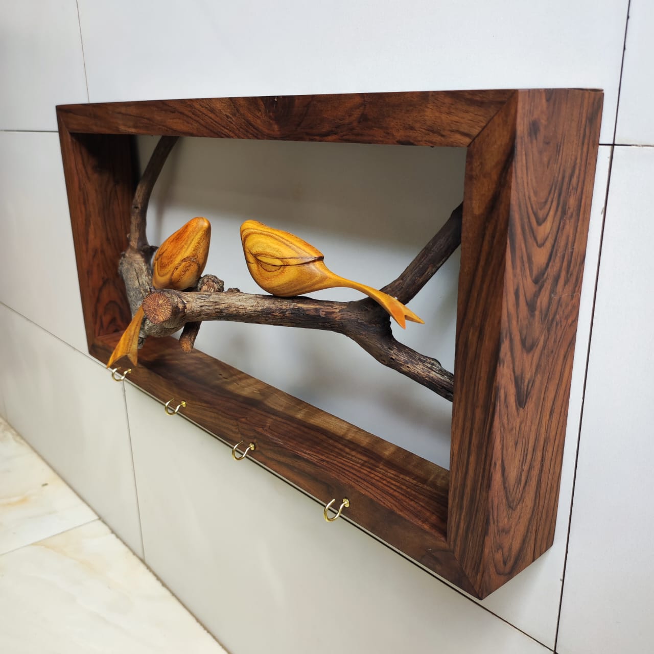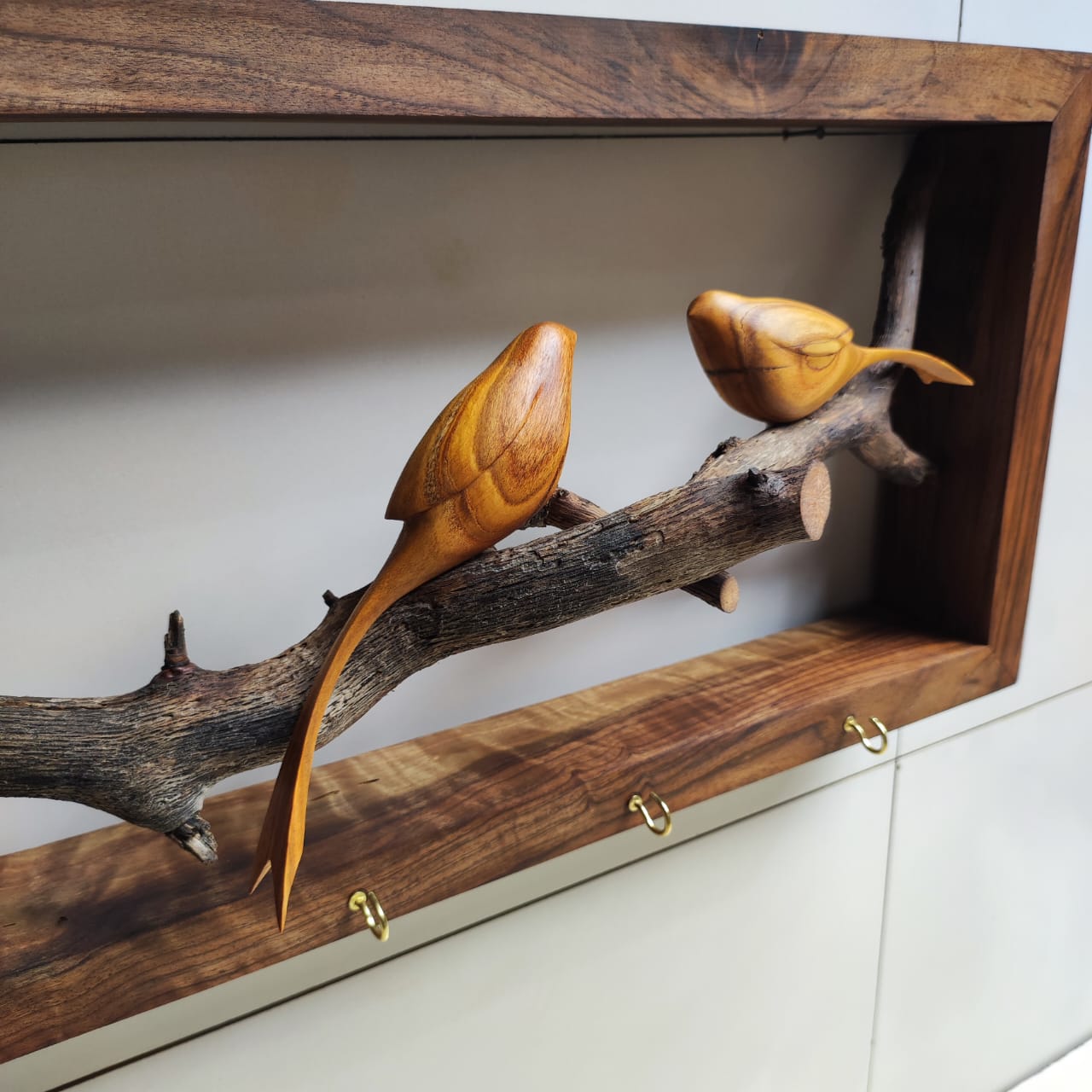 جاکلیدی دیواری چوبی گنجشک و شاخه طرح هەوشین