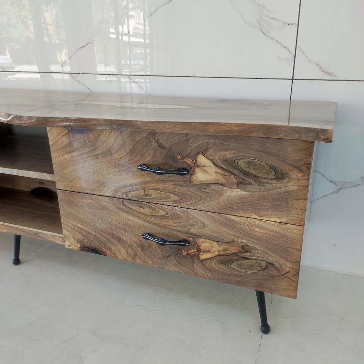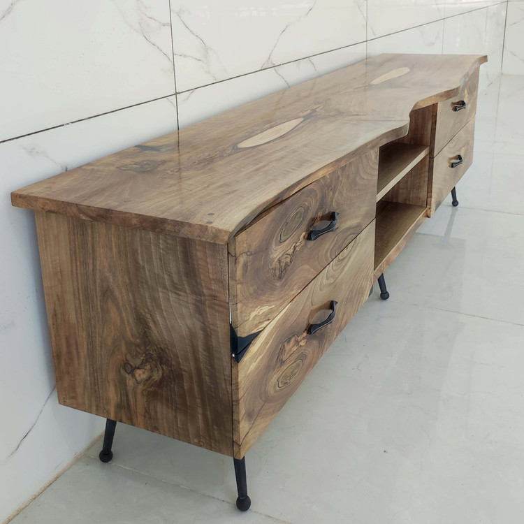 این میز tv خاص تماماً از چوب طبیعی گردو ساخته شده است و طول آن ۱۹۰ سانتی متر و عرض ۴۵ سانت با ارتفاع ۵۵ سانت مناسب خونه های با سبک روستیک و کلاسیک ، دارای چهار عدد کشو با درب آرام بند و فضای بزرگ و مناسب برای سایر لوازم جانبی.